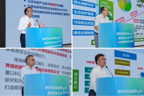 本次聯盟會議邀請了省產業技術研究院劉慶院長、生態環境部環境規劃院于雷研究員、南瑞集團科信部路小俊副主任和江蘇銀行董善寧經理分別就科技創新與產業創新深度融合、“美麗中國”戰略提出政策與實踐建議、企業科技創新實踐和綠色金融支持美麗中國建設作主題分享。四位專家從政、產、學、研、金多方面闡述了科技創新綠色發展不同路徑、不同角度的理念與見解,為江蘇生態環境領域發展新質生產力提供了關鍵路徑參考。